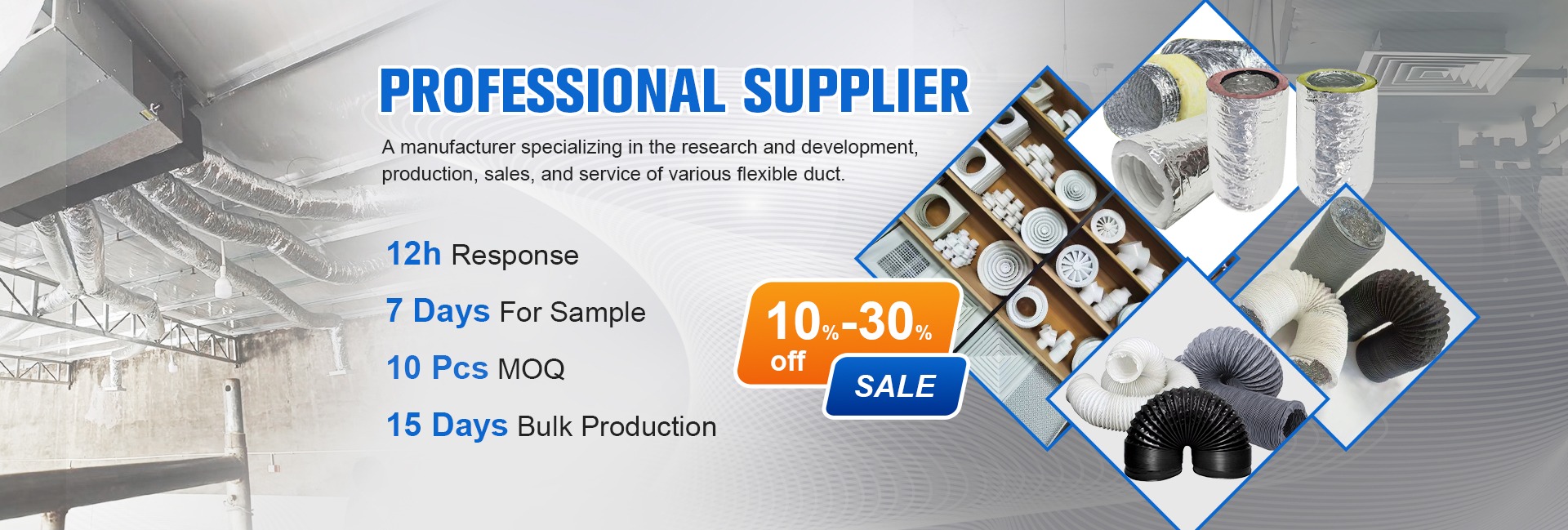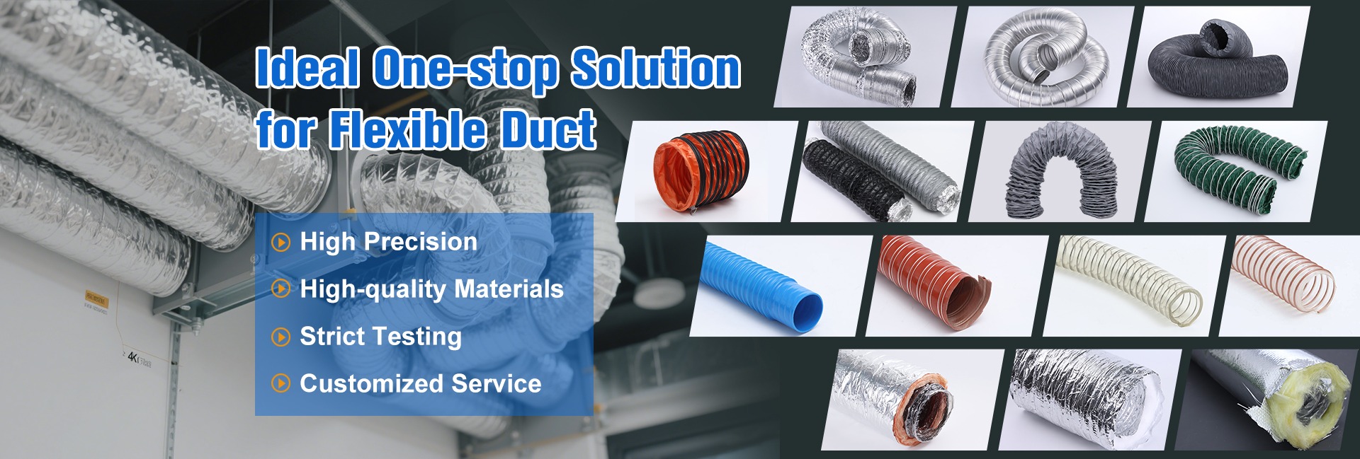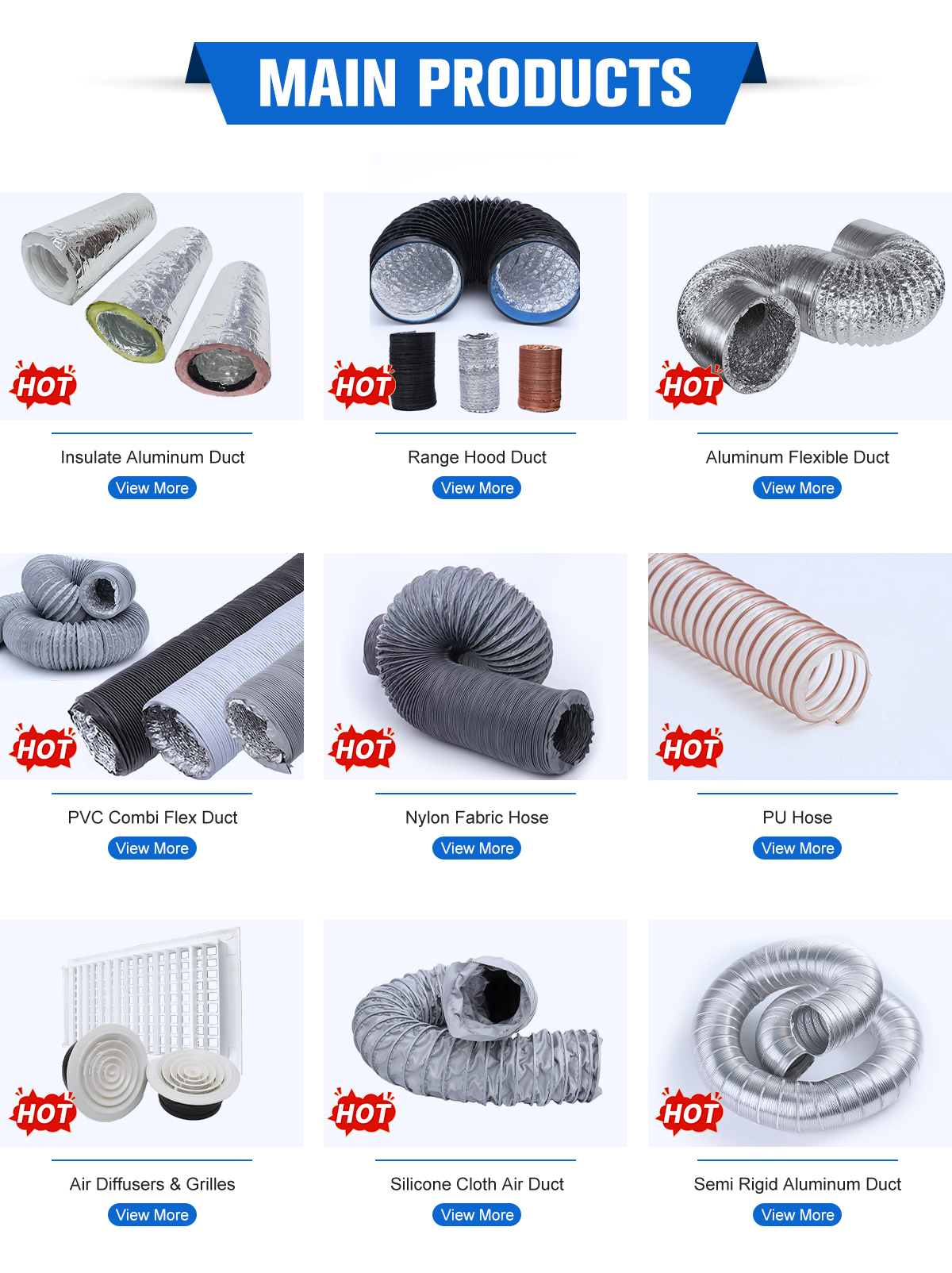 主营产品: 风管、空气铝管、玻璃纤维布复合管、隔音管、聚氯乙烯风管
